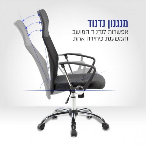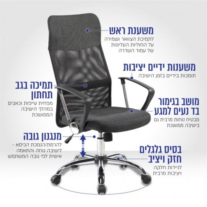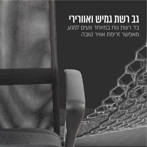גב רשת גמיש ואוורירי: הגב עשוי מרשת גמישה ואוורירית שמאפשרת זרימת אוויר טובה