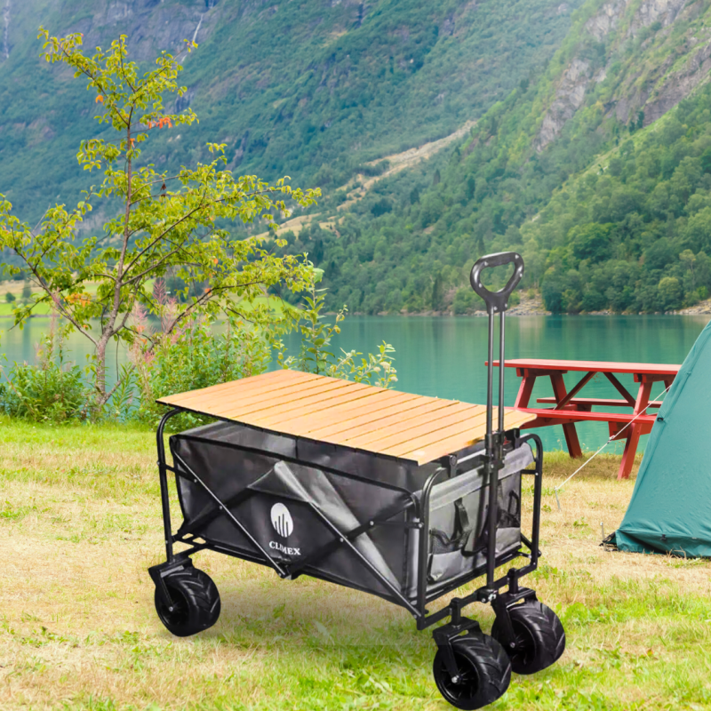 עגלת קמפינג חזקה במיוחד עם גלגלים עבים ושולחן מתקפל מבית CLIMAX