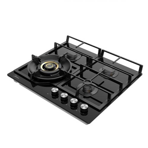 כיריים גז 60 ס"מ 4 להבות טורבו וולקנו 2.0 בגימור זכוכית שחורה.
